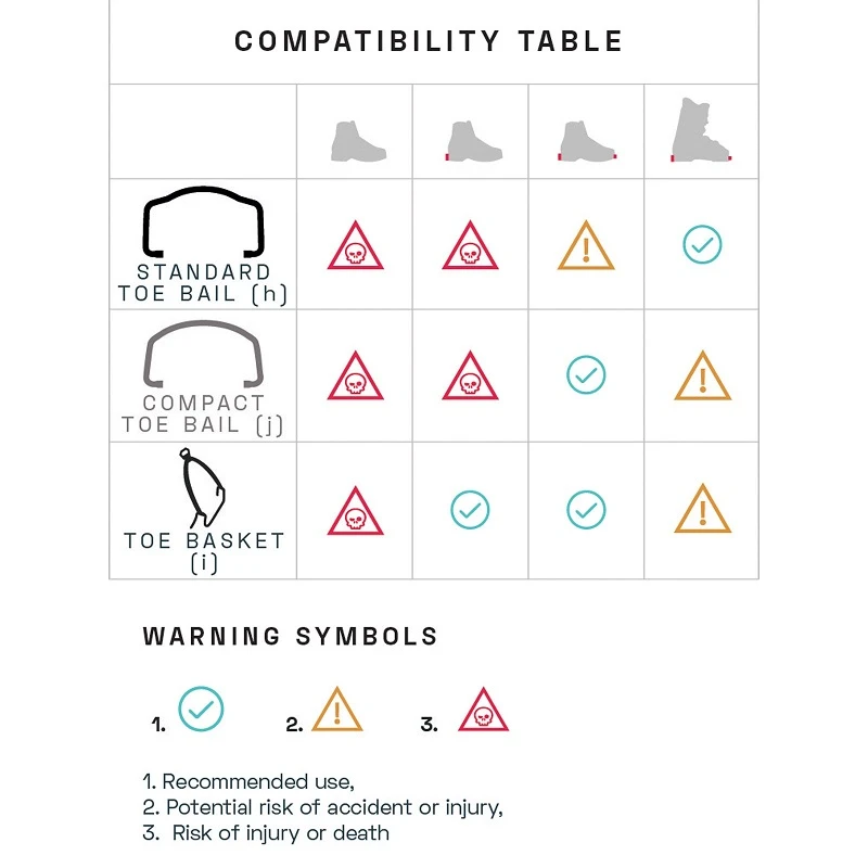Sold with semi-automatic “Toe basket”, automatic “Standard toe bail” and storing bag