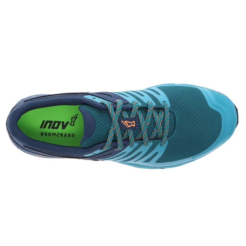 Upgrades to the version 2 (V2) can be found in the midsole and upper. The midsole now features Inov8’s POWERFLOW MAX foam for greater comfort, cushioning and energy return. Below the foam sits a flexible rock plate for underfoot protection, while above it sits our super-soft, mega-bouncy BOOMERANG footbed.