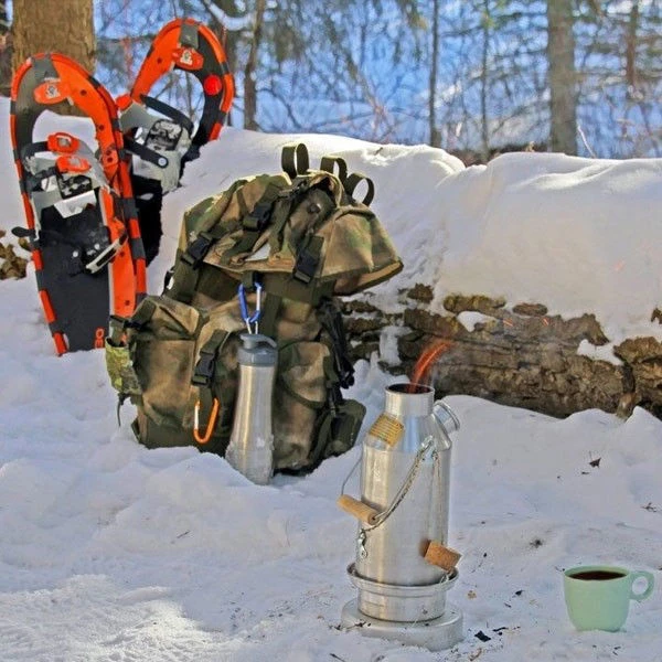 As there is no need to carry fuel, these kettles will keep your pack light and save you money at the same time – never worry about running out of fuel again! Using any naturally occuring solid fuel (sticks, pine cones, dry camel dung! etc.) this kettle will operate perfectly well, even in a storm and will bring 2 Mugs of water to a rolling boil within a matter of minutes. If more hot water is required (this kettle will easily boil water quickly for a party of 4-6 people), simply refill the kettle and place it back on the fire base and refuel the chimney again. The kettle will be boiled again within a matter of minutes where water can be used for more hot drinks, boil-in-the-bag, bathing, washing up, etc. A wonderful piece of camping equipment.