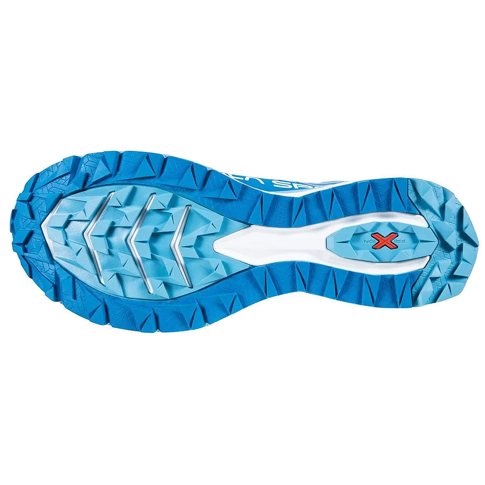 The La Sportiva Jackal Woman has a wide, high volume fit to accommodate foot spread that might occur during long distances. The well-balance sole unit that offers moderate lugs and the Dual Compound Frixion Red rubber provides a good balance between durability and ‘stickiness’.