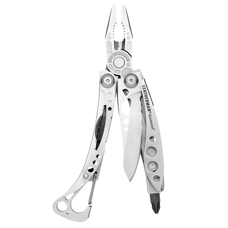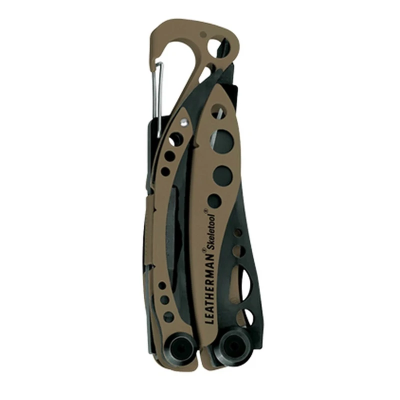 At a mere five ounces, the Leatherman Skeletool has a stainless steel combo blade, pliers, bit driver, removable pocket clip and carabiner/bottle opener. The Skeletool is just what you need in one good lookin’ package.