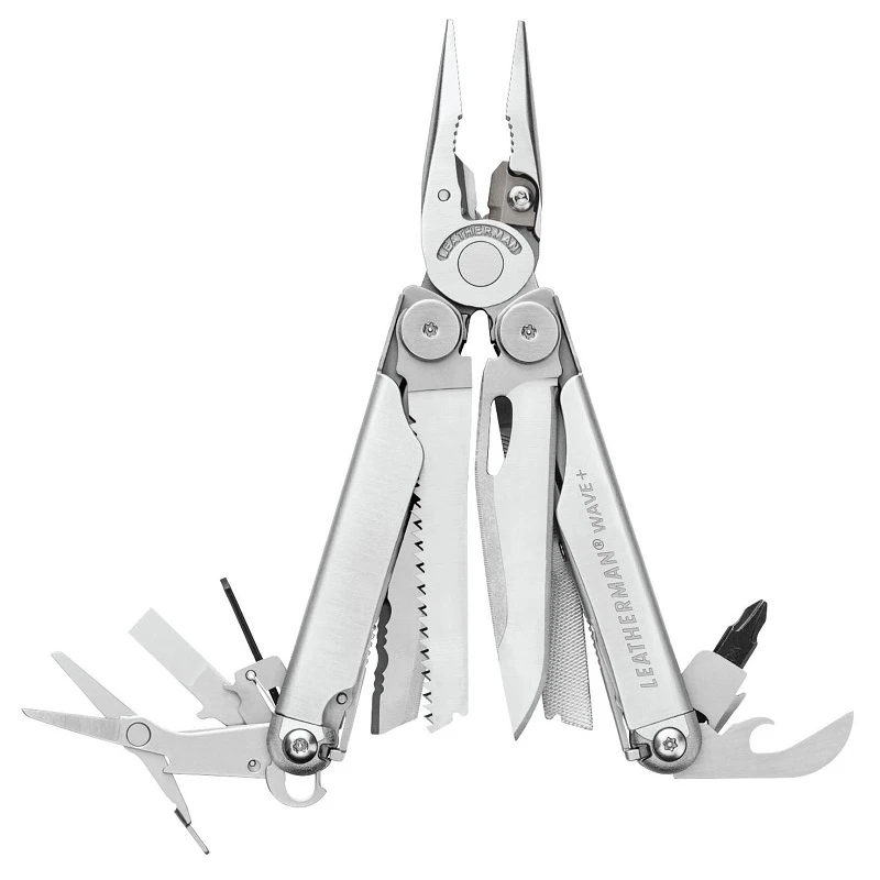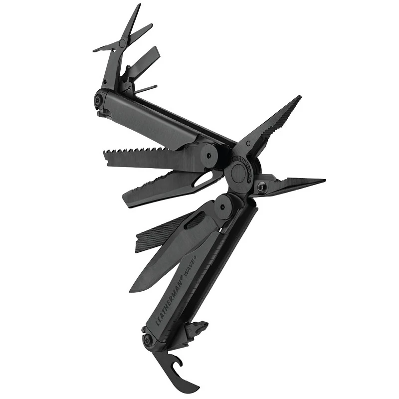 This multi-tool features tools that are accessible while the tool is in its folded or closed position, mimicking the functionality of a pocket knife.
