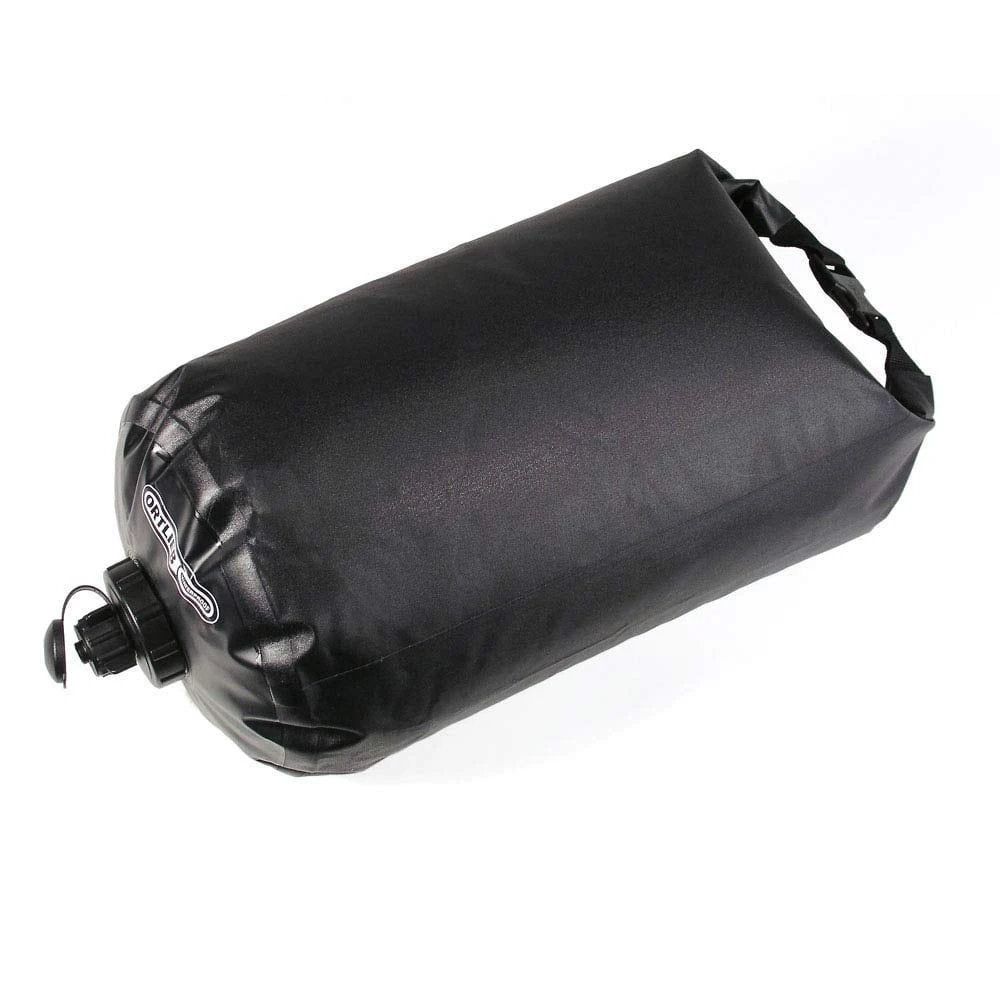 Goodbye bulky containers. The Ortlieb Water Sack ensures reliable water supply in your camp doing without big and bulky canisters. On tour the Water Sack can be packed away taking up very little space, in the camp it offers a generous 10 litres for cooking, washing or even for a shower. The large roll closure opening allows easy filling. The Water Sack is made of tear-resistant, waterproof fabric, and the integrated base valve allows easy metering. The Watersack can be combined with the purification filter by Katadyn.
