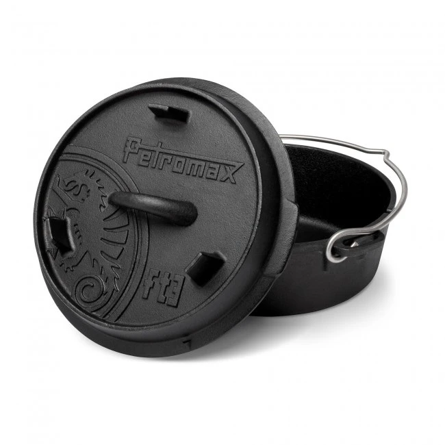 The Petromax Dutch Ovens are ideal companions for outdoor activities such as travel and camping. Perfect for cooking over an open fire and in the home kitchen, they allow cooking food such as vegetables and meat very gently in its own juice. They feature a specially designed lid that can be used as a skillet or a platter.Â