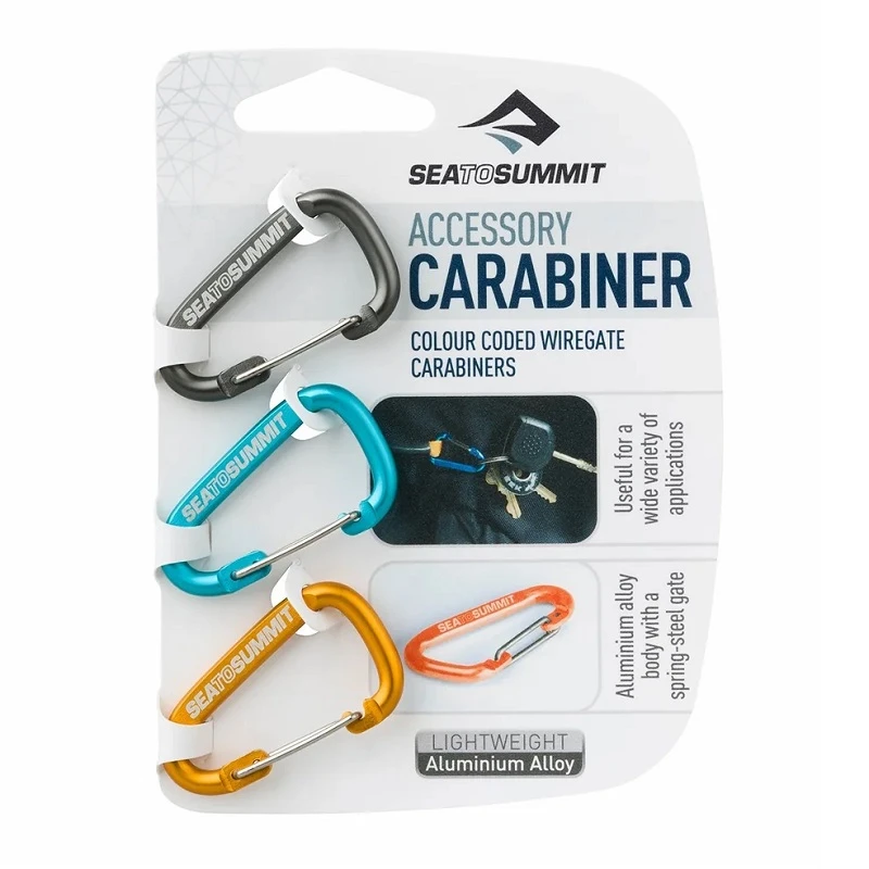 The Sea to Summit Accessory Carabiner Set is ideal for keeping keys together, attaching guy lines to a Tarp-Poncho and hanging a headlamp in your tent, among many other things. The carabiner itself includes a wire gate and is extremely lightweight. The Accessory Carabiners come in a pack of three Colours – perfect for all those gear organizing fanatics out there.
